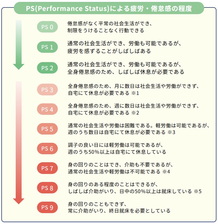 これね。改めて気づいたけど、世の中の大部分の健康な人がPS 0~PS 2ってすごくない?本当にみんなそんな元気なの?